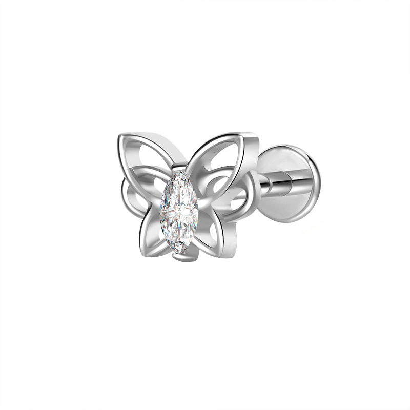 New butterfly titanium piercing earrings with 5A cubic zirconia for girls and women